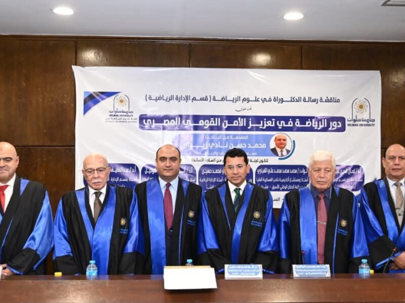 خطوة علمية رائدة تعكس حرص الدولة على دمج البحث الأكاديمي بالتطبيق العملي، نوقشت رسالة الدكتوراه المقدمة من الدكتور محمد حسن معاون وزير الشباب والرياضة، بعنوان “دور الرياضة في تعزيز الأمن القومي المصري”.